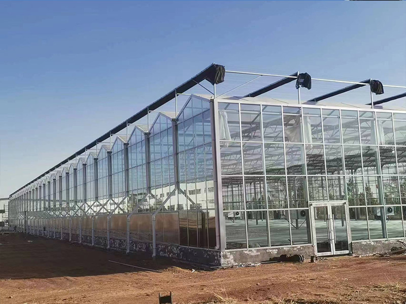 1、該類溫室采用熱鍍鋅鋼制骨架,覆蓋材料為國標5mm厚浮法玻璃,其透光率>90%。
